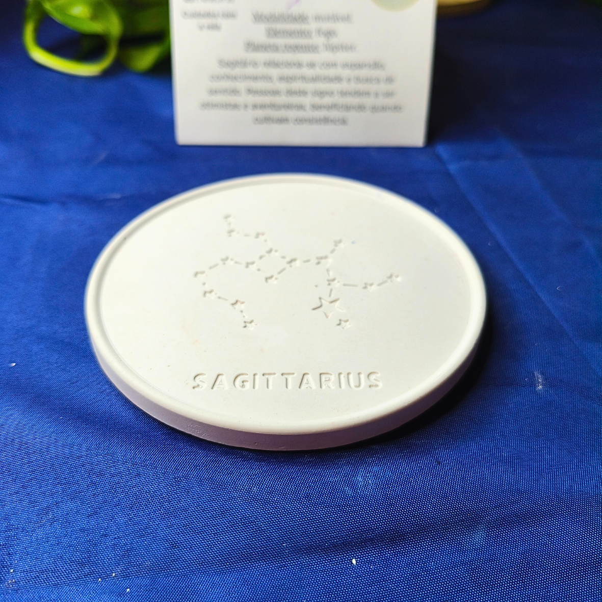 Descubra a energia da astrologia com as bases de gesso cerâmico com as constelações dos signos. Cada peça é feita com dedicação e carinho, capturando a beleza única de cada constelação e a essência do seu signo. Perfeitas para decorar qualquer espaço, podem também ser usadas como gesso perfumado, trazendo equilíbrio e harmonia para o seu ambiente.