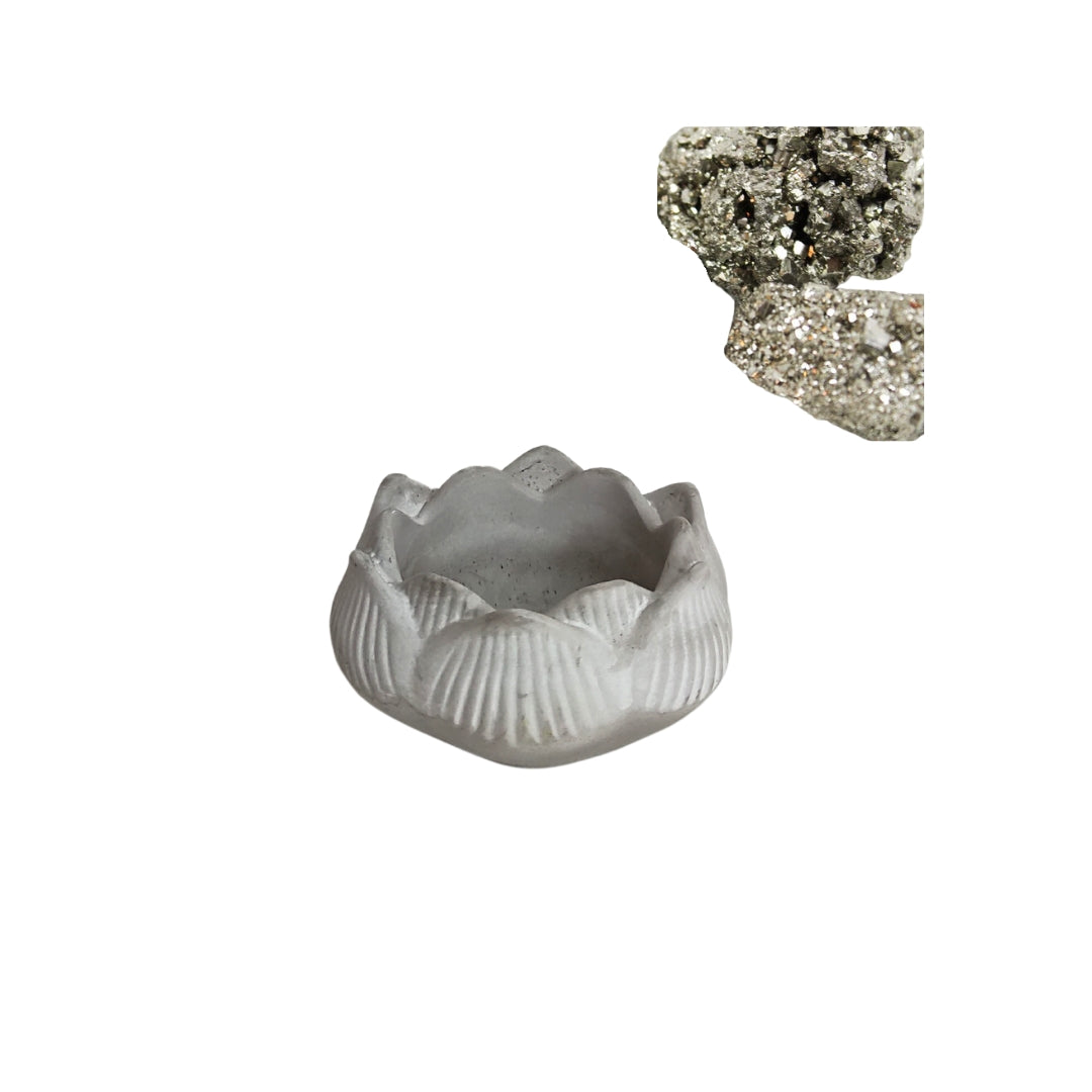 - Vela com cerca de 40g de cera de soja, em peça de gesso cerâmico com 8cm de diâmetro;
