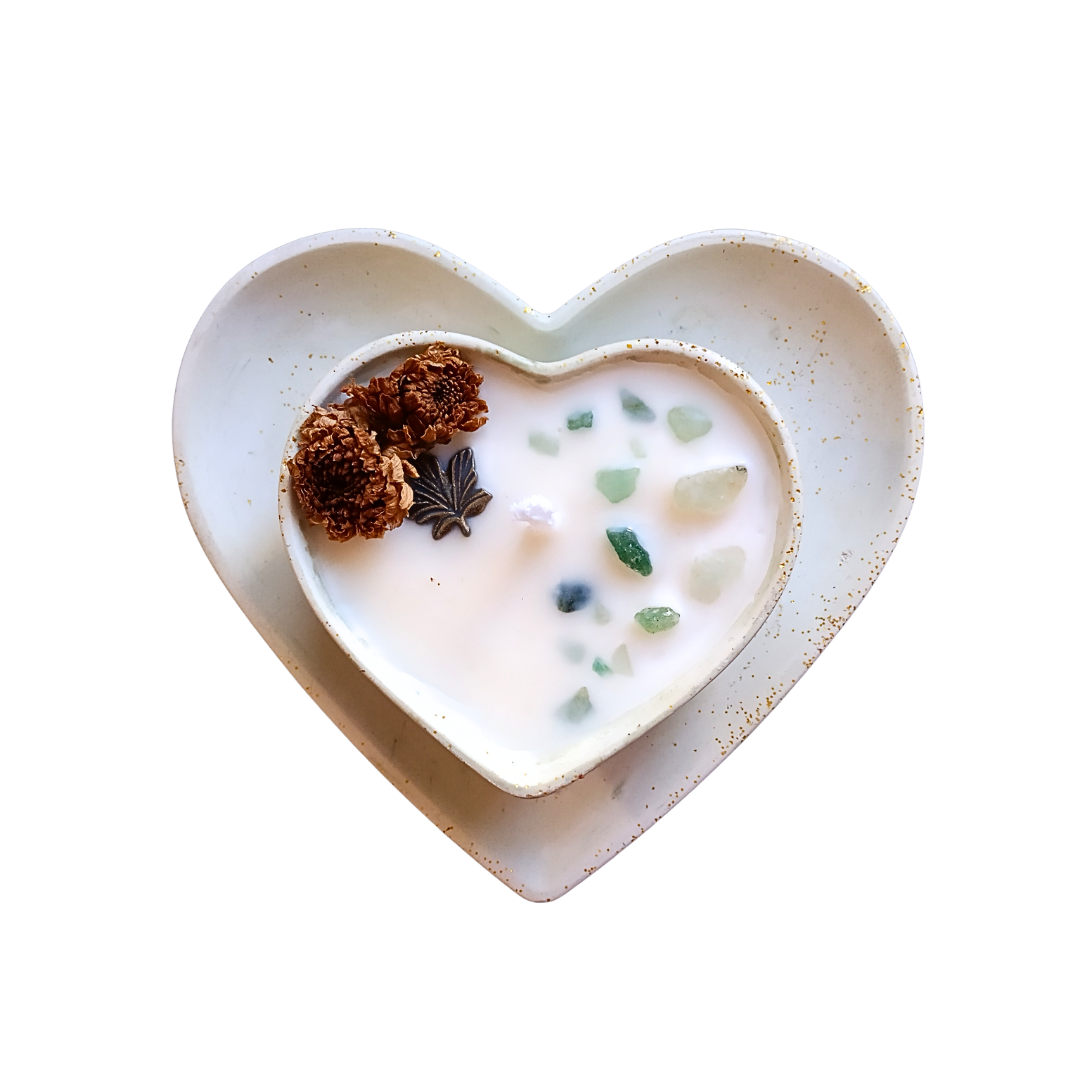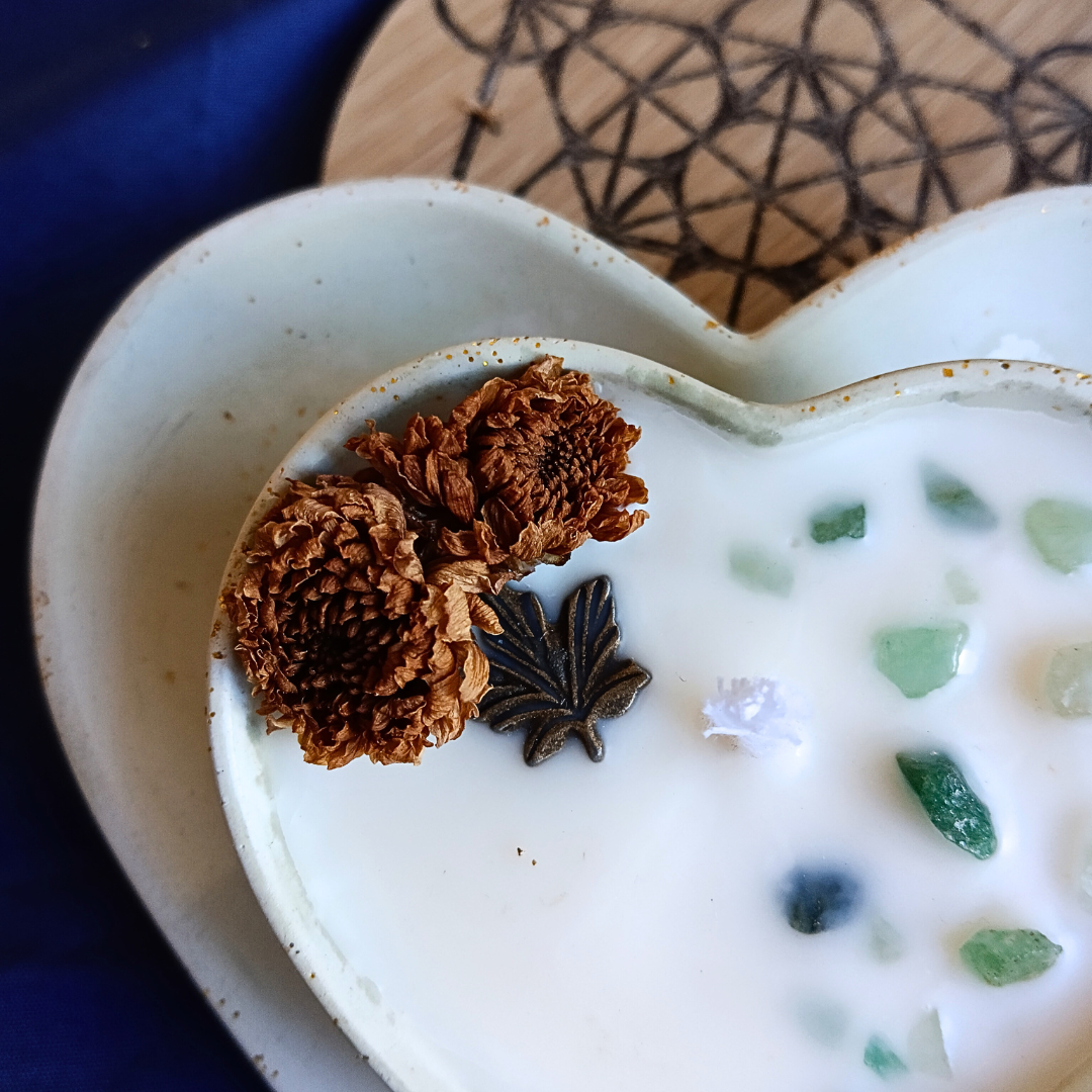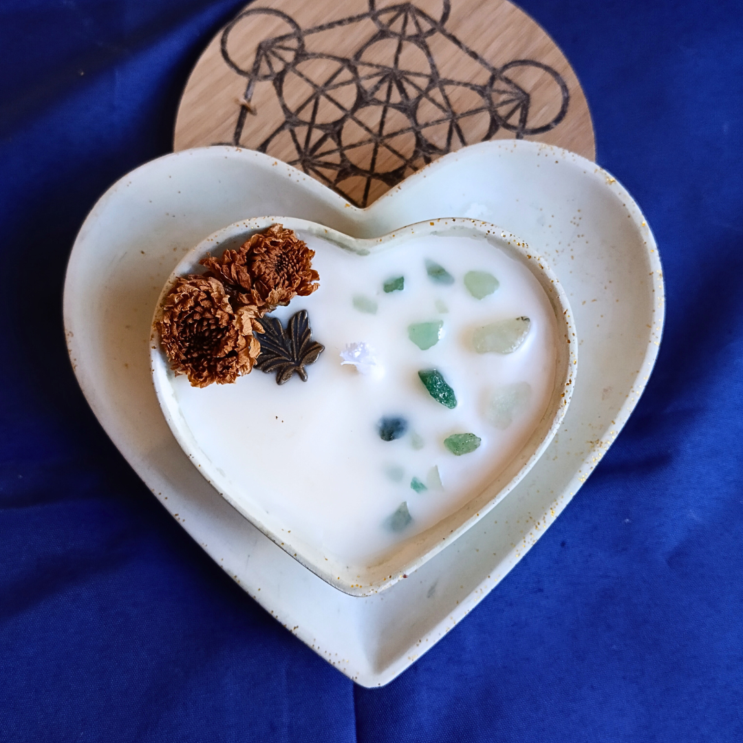Vela All-Ki-Mística® com Óleo Essencial de Alecrim em Conjunto Corações com cristais Aventurina Verde