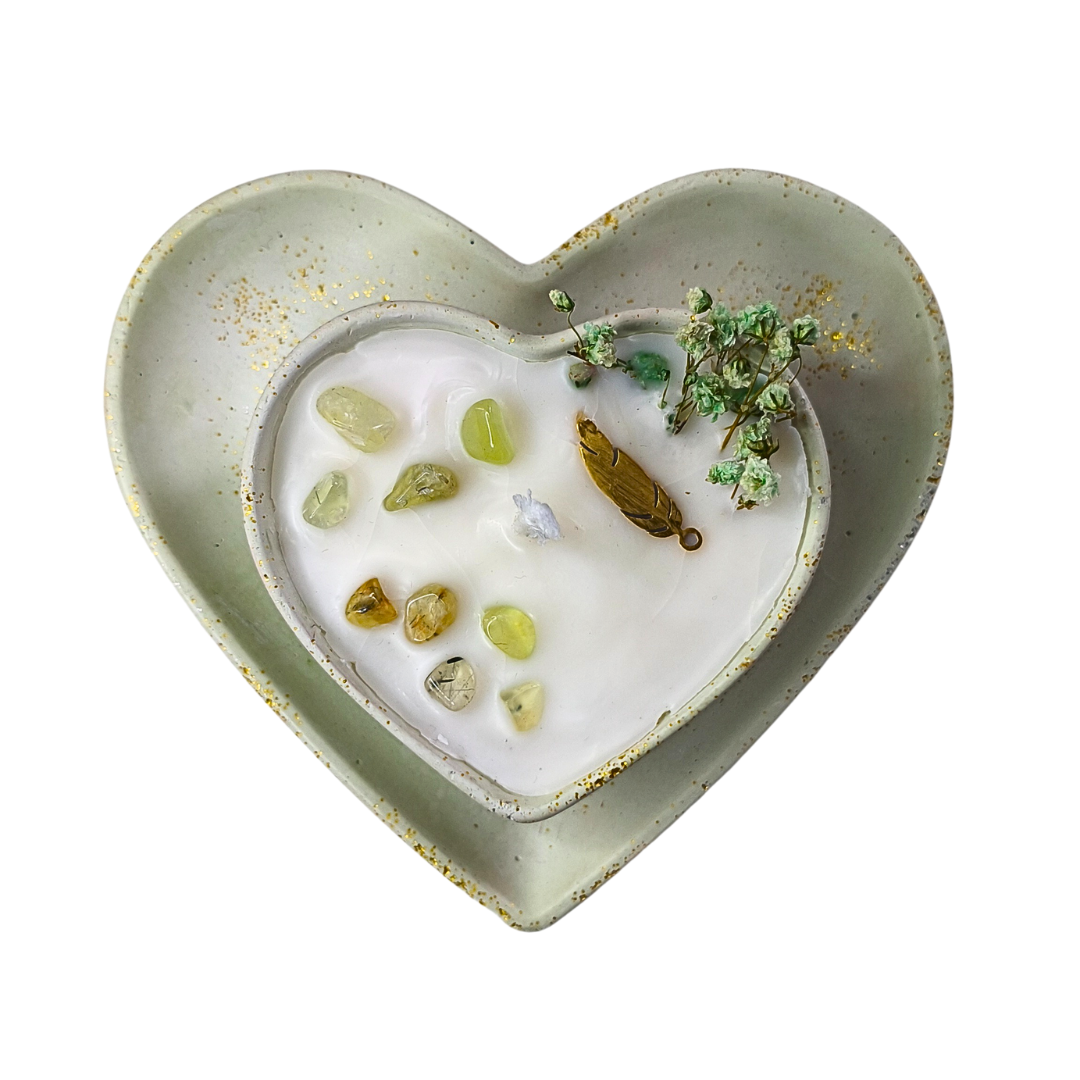 Vela All-Ki-Mística® com Óleo Essencial de Alecrim em Conjunto Corações com cristais Prehnite