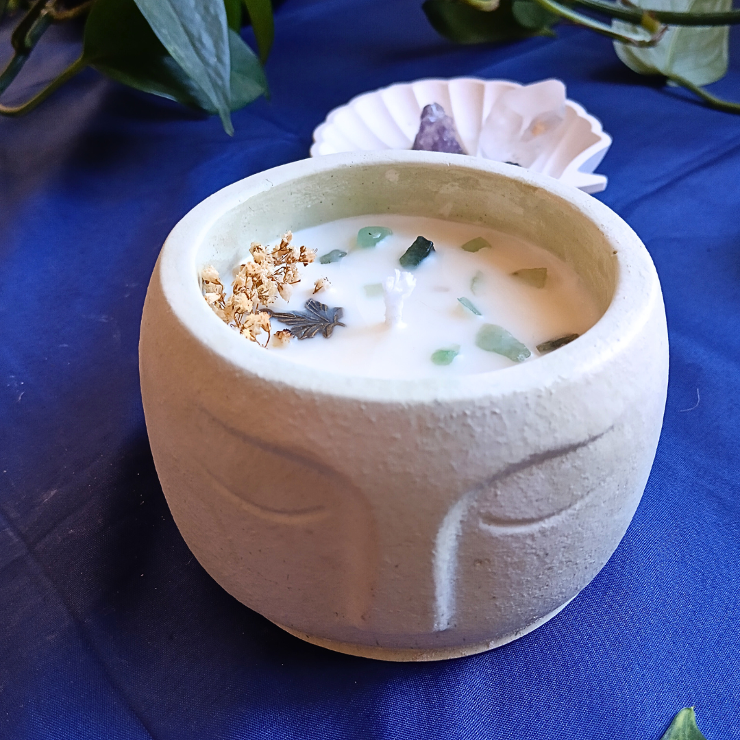 Vela Ânima com Óleo Essencial de Alecrim e Aventurina Verde