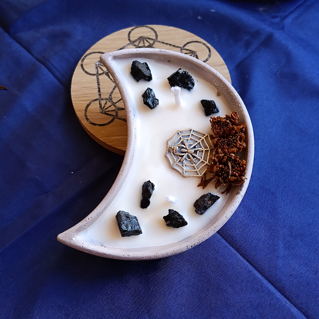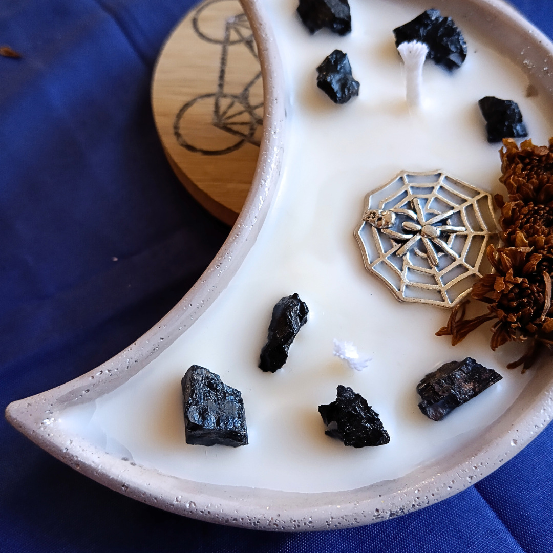 Vela Lua com Óleo Essencial de Alecrim e Turmalina Negra